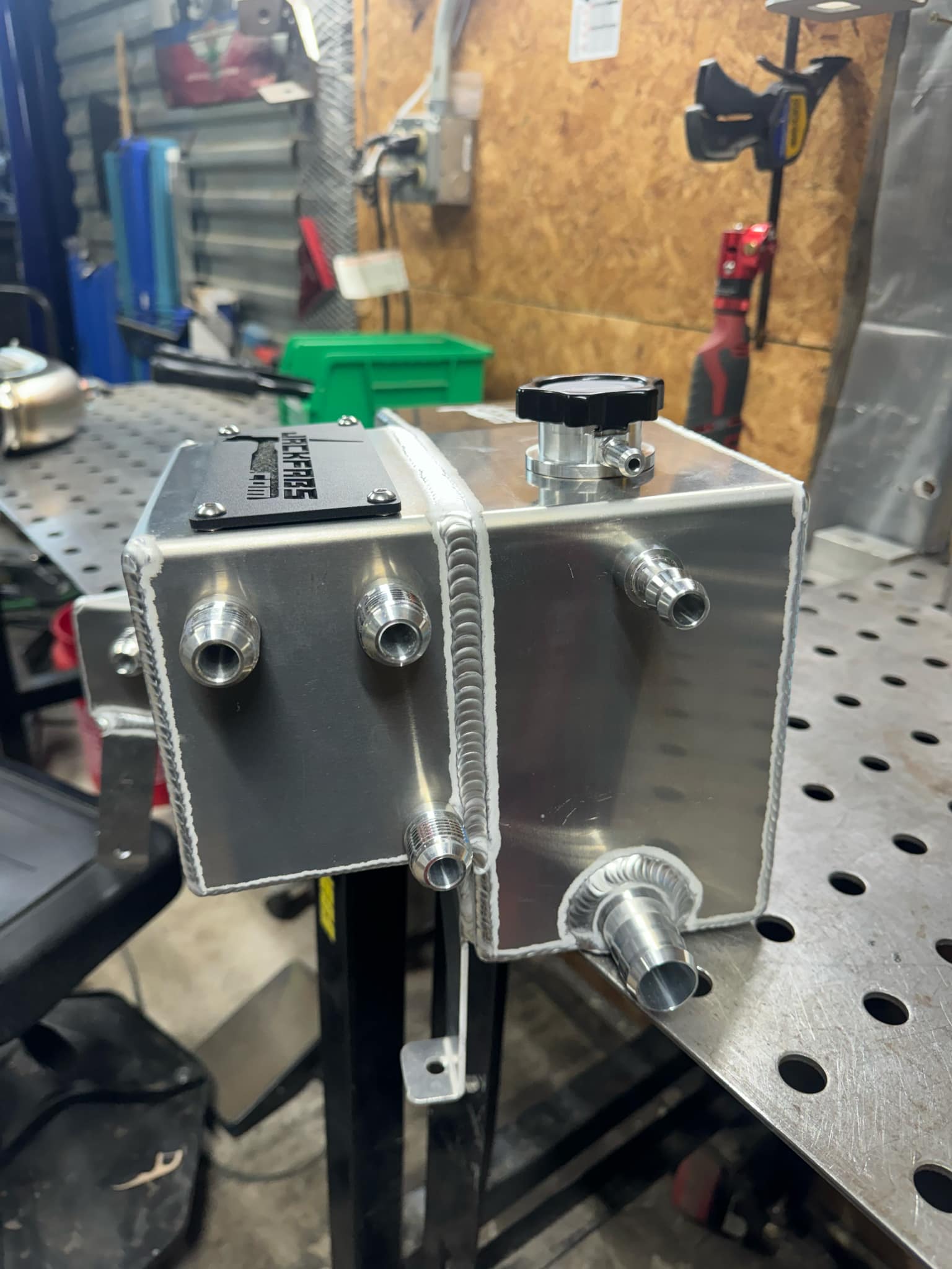 - Stock size barb fitting for coolant pump feed and overflow hose.