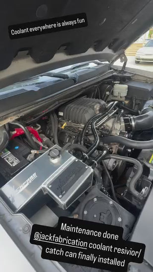 Clean up the engine bay of your 07-13 Gen IV GMC Sierra/Chevy Silverado with our laser-cut aluminum internally baffled oil catch can and coolant overflow combo tanks. This tank is direct bolt in replacement for your factory plastic tank with an added oil catch can for boost!