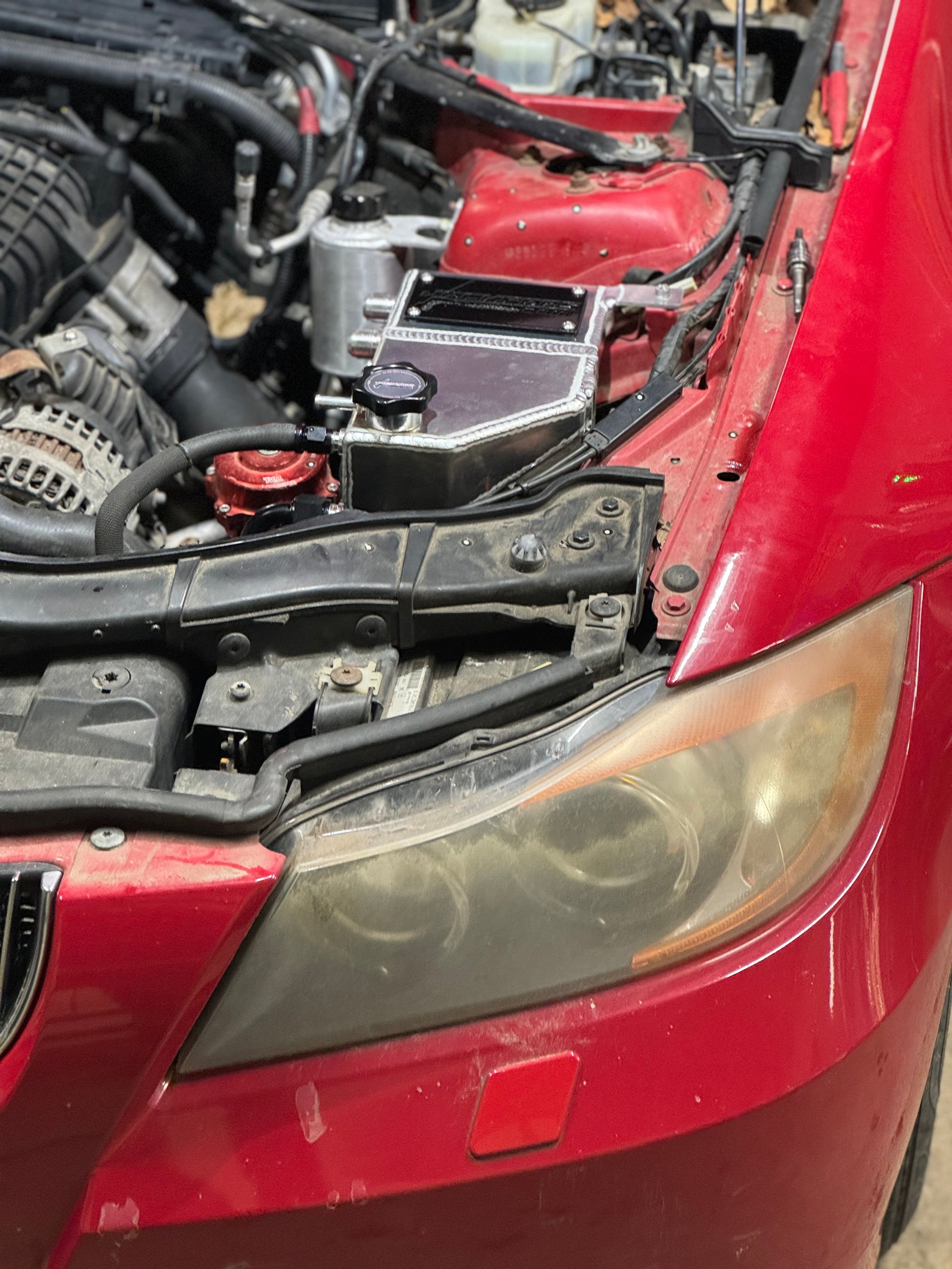 JackFabs E8x/E9X BMW Coolant Expansion/Oil Catch Can Combo Tank is the perfect solution for your single turbo e9x n54. This is a direct bolt in replacement for the drivers side of the E8x/E9x chassis using factory bolt hole locations.